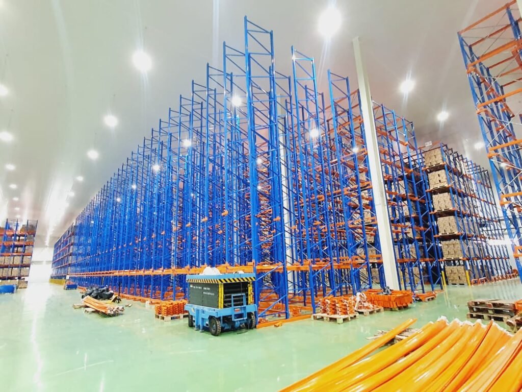 Tata letak gudang yang baik harus mengutamakan keselamatan dan kecepatan. Pastikan ada cukup ruang untuk manuver forklift, serta jalur aman bagi operator berjalan kaki. Sistem rak Very Narrow Aisle (VNA) juga bisa dipertimbangkan jika Anda ingin memaksimalkan ruang sekaligus mempertahankan aksesibilitas.