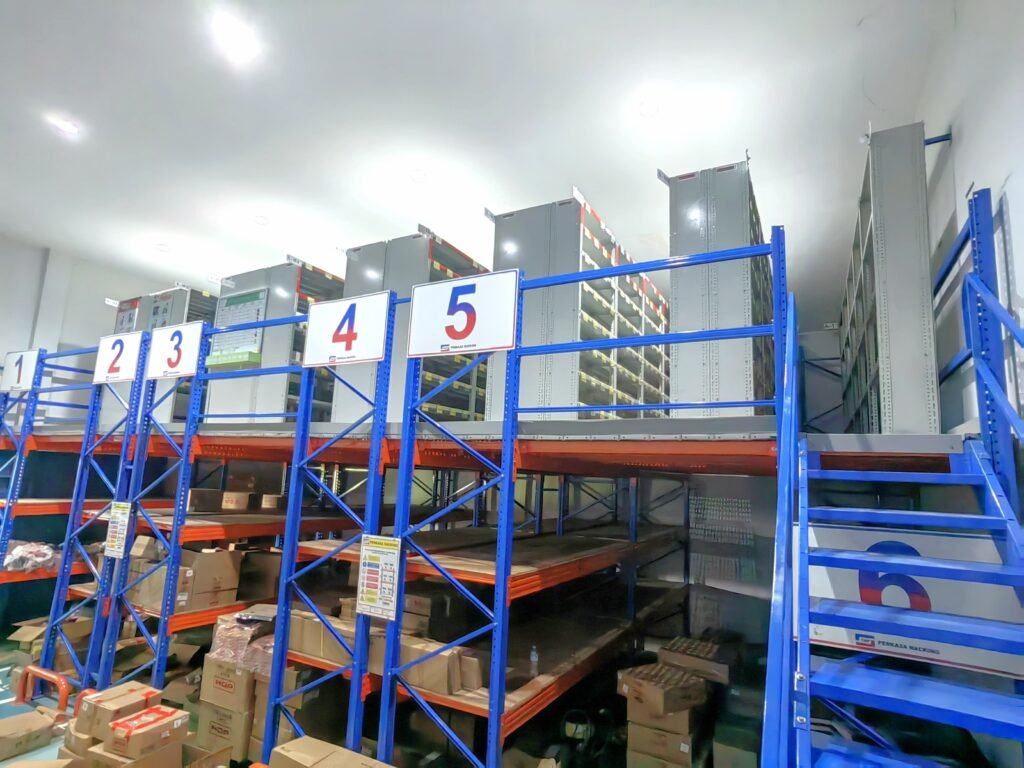 Untuk menyimpan suku cadang kecil dan menengah, rak modular bisa disesuaikan tinggi dan jumlah shelving-nya. Sangat cocok untuk ruang penyimpanan di area produksi maupun toko suku cadang.